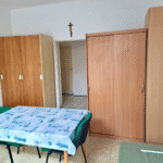 Ubytovanie v kláštore sestier, ktoré sa nachádza na ulici Halenárska 8 v Trnave má kapacitu 19 miest. K dispozícii sú tu jedno až trojlôžkové izby. Niektoré izby majú bunkový systém, kde dve izby zdieľajú spoločné sociálne zariadenia, ostatné izby majú sociálne zariadenia na chodbe. Súčasťou internátu sú spoločné priestory – kuchynka so základným vybavením (sporák, mikrovlnná rúra, chladnička, rýchlovarná kanvica, riady), spoločenská miestnosť s klavírom a kaplnka.